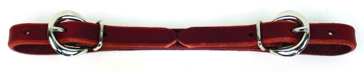 1/2" wide edged leather curb has nickelplated swedge buckles and leather loops.Available in Hermann Oak harness leather.