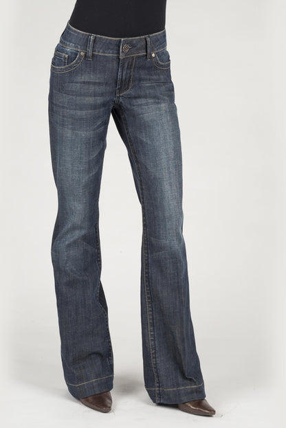 Trouser Style Western Jean * Sits Just Below The Waist * Moderately Fit Thigh W/Flared Leg * 2 Button Contour Waist Band * Stetson Logo S On Back Pockets * Stetson Branded Buttons And Zippers * Gentle Hand Sand * Stretch Denim
