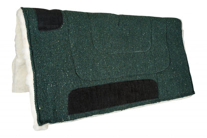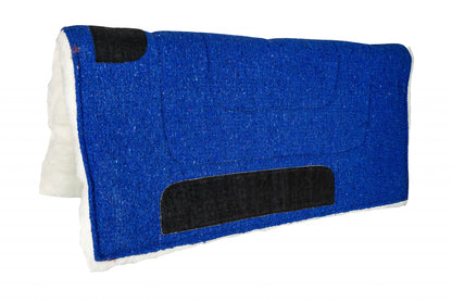This pad features a solid color acrylic blanket top, 1" felt center, fleece bottom with suede wear leathers and gullet reinforcement.