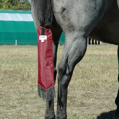 Superior quality and durability, the Cashel tail bag prevents dirt, manure, breeding and chewing foals from damaging your horses tail. Adjustable elastic top and sturdy hook and loop closure makes it easy to put on and stays in place. Four inch fringe acts as a natural fly swatter.