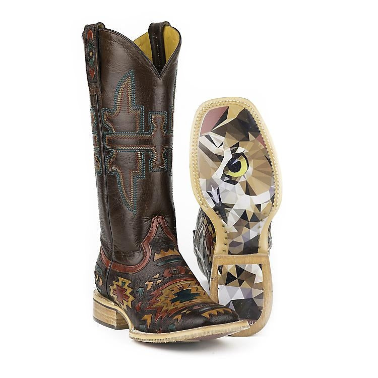 - Colorful Hand Painted And Handtooled Vamp, Brown Shaft With Embroidery and Handtooled Pulls