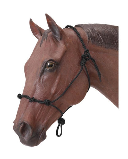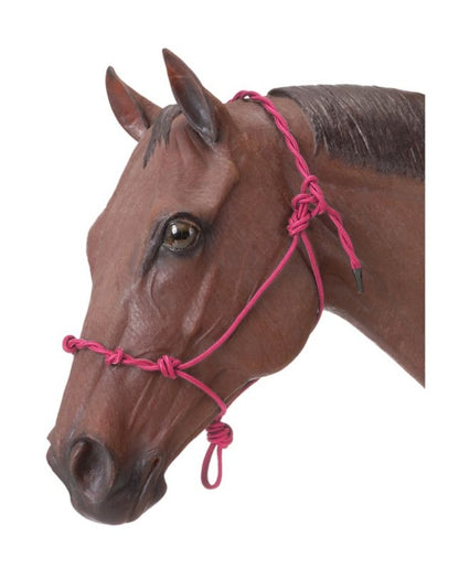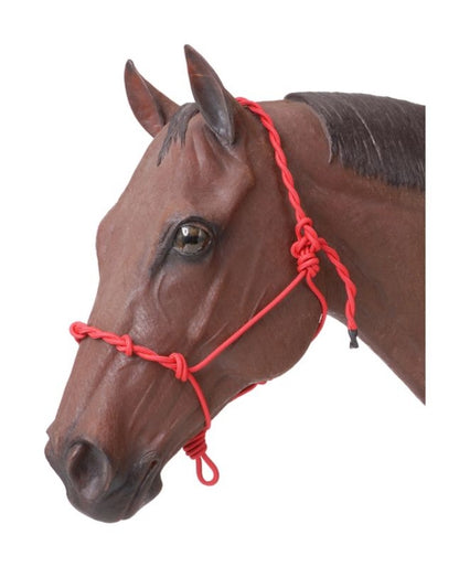 This 3/8" poly rope halter has a twisted crown and knots at pressure points on nose for better control during training. It is medium soft and is sized for an average horse, but because of the design, it will fit a large range of horse heads.