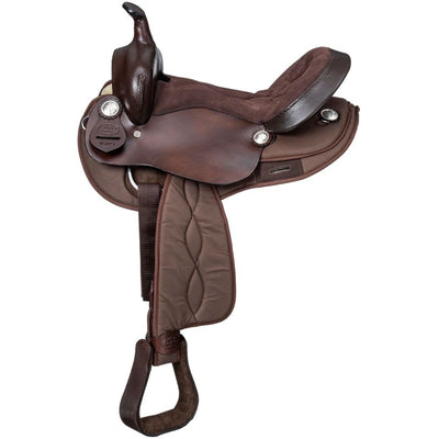 Kids' western saddles are available in most styles and youth sizes. Youth saddles come in leather or easy to care for synthetic. Western youth saddles are scaled down for the young Western rider. Kids' Western saddle styles like all-around saddles, barrel saddles, roping saddles, trail saddles, or show saddles are available.